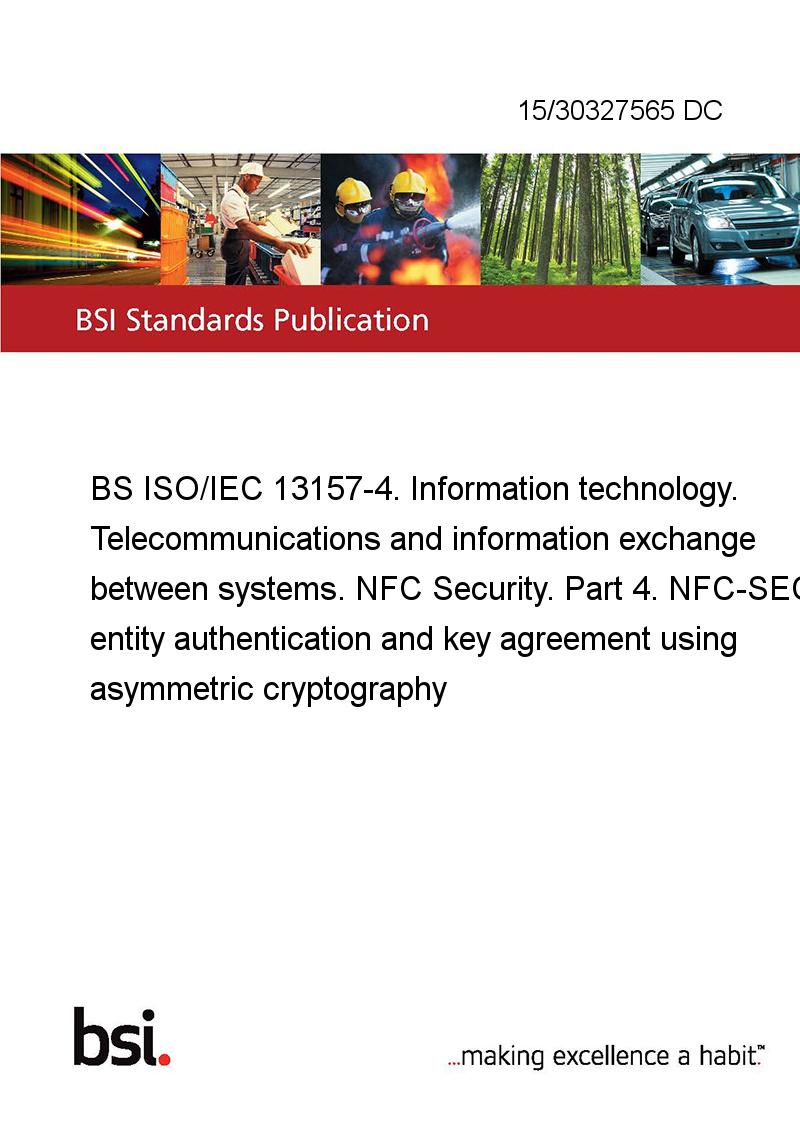 BS ISO/IEC 13157-4. Information technology. Telecommunications and information exchange between systems. NFC Security. Part 4. NFC-SEC entity authentication and key agreement using asymmetric cryptography