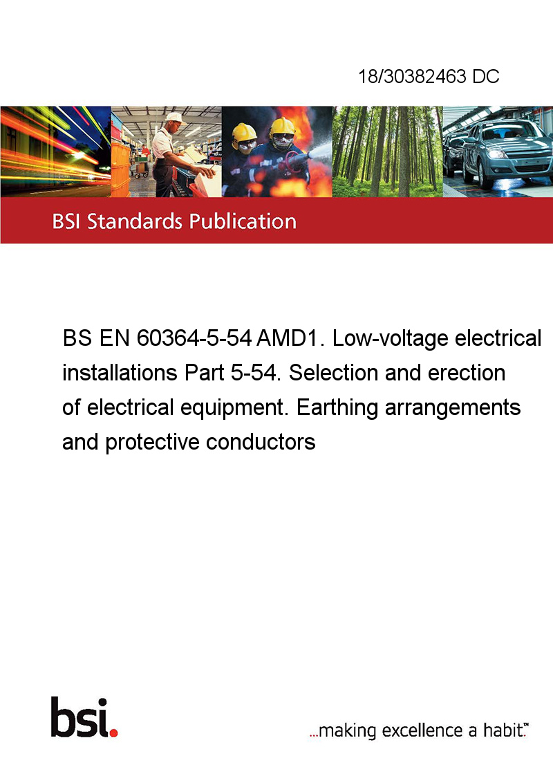 18/30382463 DC BS EN 60364-5-54 AMD1. Low-voltage electrical installations Part 5-54. Selection and erection of electrical equipment. Earthing arrangements and protective conductors