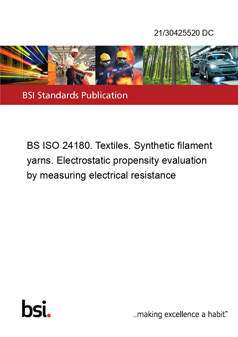 BS ISO 24180. Textiles. Synthetic filament yarns. Electrostatic propensity evaluation by measuring electrical resistance