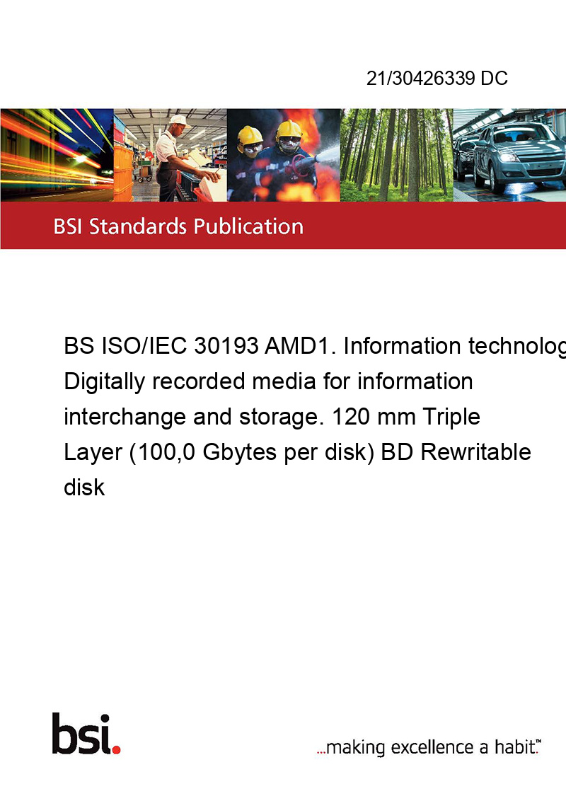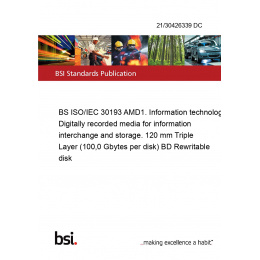 BS ISO/IEC 30193 AMD1. Information technology. Digitally recorded media for information interchange and storage. 120 mm Triple Layer (100,0 Gbytes per disk) BD Rewritable disk