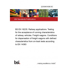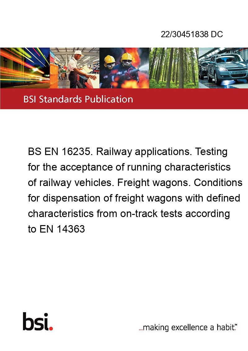 BS EN 16235. Railway applications. Testing for the acceptance of running characteristics of railway vehicles. Freight wagons. Conditions for dispensation of freight wagons with defined characteristics from on-track tests according to EN 14363