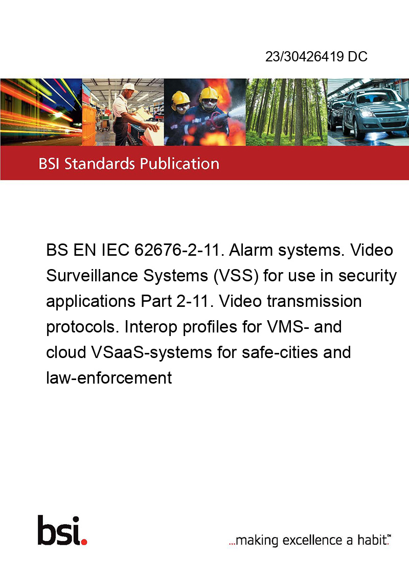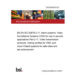 BS EN IEC 62676-2-11. Alarm systems. Video Surveillance Systems (VSS) for use in security applications Part 2-11. Video transmission protocols. Interop profiles for VMS- and cloud VSaaS-systems for safe-cities and law-enforcement
