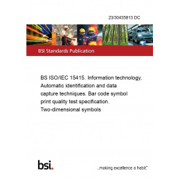 BS ISO/IEC 15415. Information technology, Automatic identification and data capture techniques. Bar code symbol print quality test specification. Two-dimensional symbols