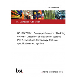 BS ISO 7615-1. Energy performance of building systems. Underfloor air distribution systems Part 1. Definitions, terminology, technical specifications and symbols