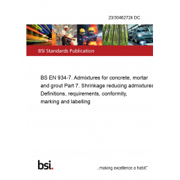 BS EN 934-7. Admixtures for concrete, mortar and grout Part 7. Shrinkage reducing admixtures. Definitions, requirements, conformity, marking and labelling