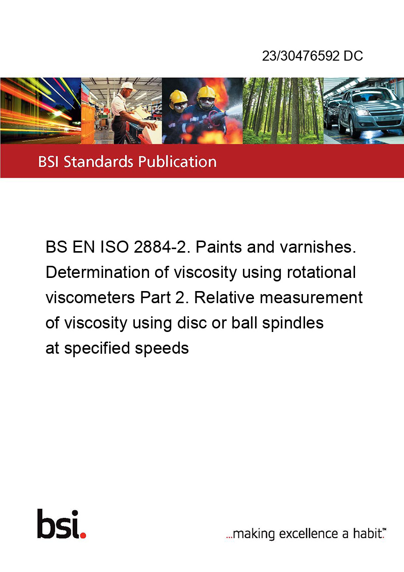 BS EN ISO 2884-2. Paints and varnishes. Determination of viscosity using rotational viscometers Part 2. Relative measurement of viscosity using disc or ball spindles at specified speeds
