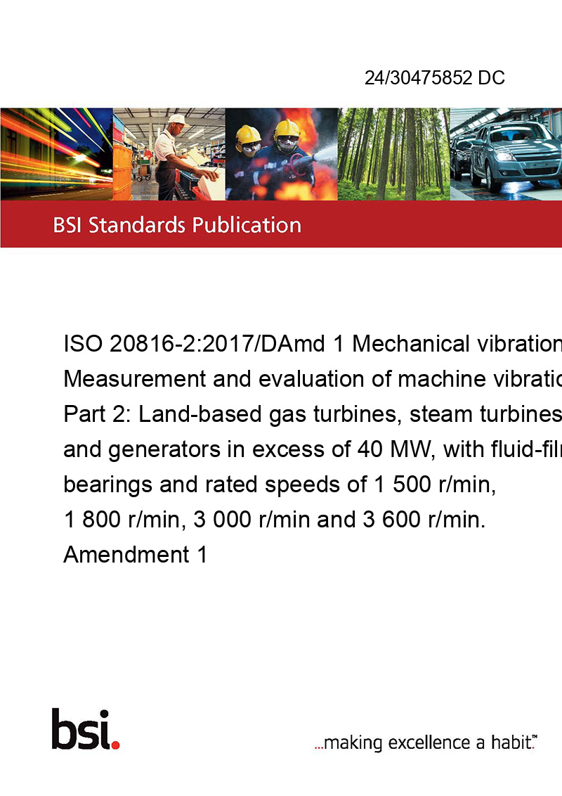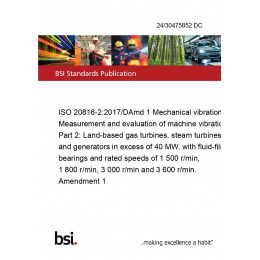 ISO 20816-2:2017/DAmd 1 Mechanical vibration. Measurement and evaluation of machine vibration. Part 2: Land-based gas turbines, steam turbines and generators in excess of 40 MW, with fluid-film bearings and rated speeds of 1 500 r/min, 1 800 r/min, 3 000 r/min and 3 600 r/min. Amendment 1