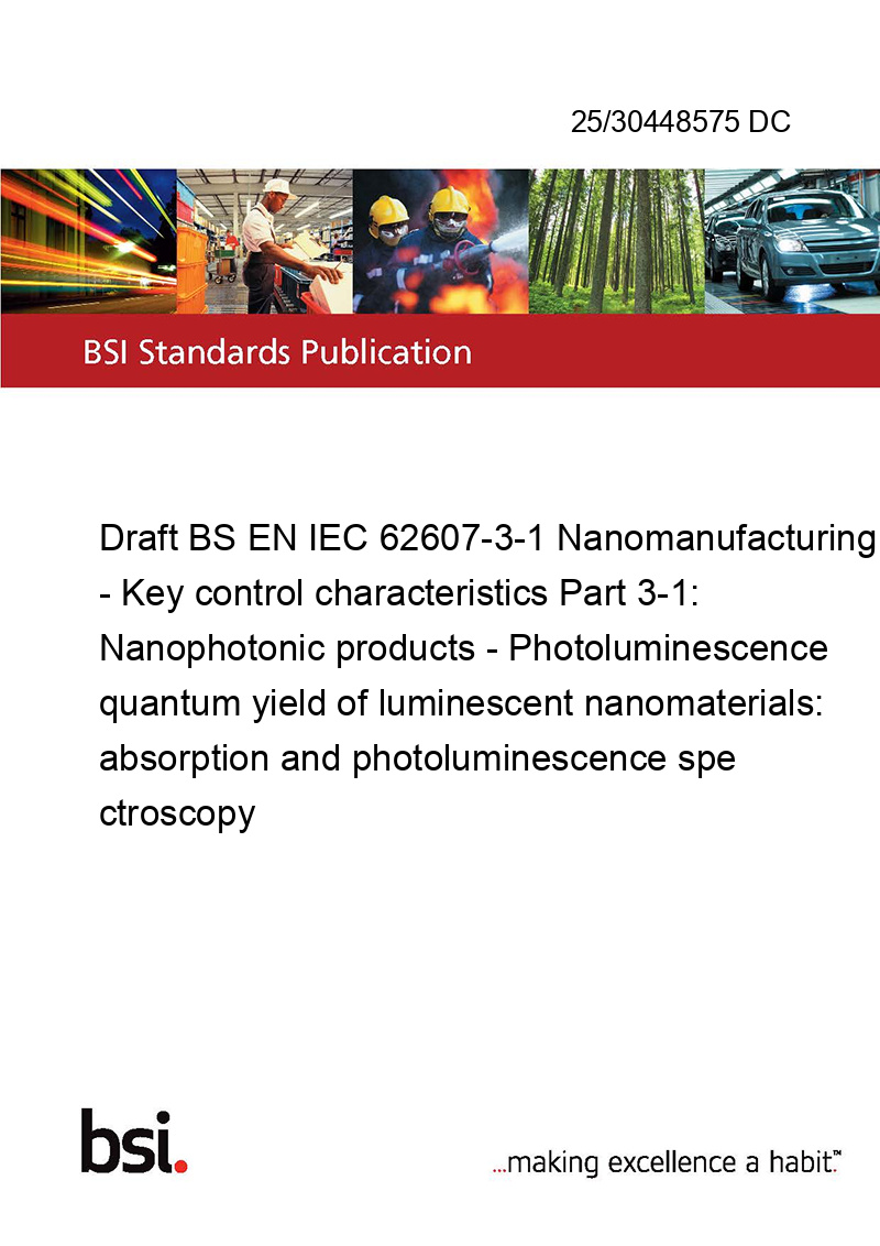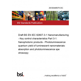 Draft BS EN IEC 62607-3-1 Nanomanufacturing - Key control characteristics Part 3-1: Nanophotonic products - Photoluminescence quantum yield of luminescent nanomaterials: absorption and photoluminescence spectroscopy
