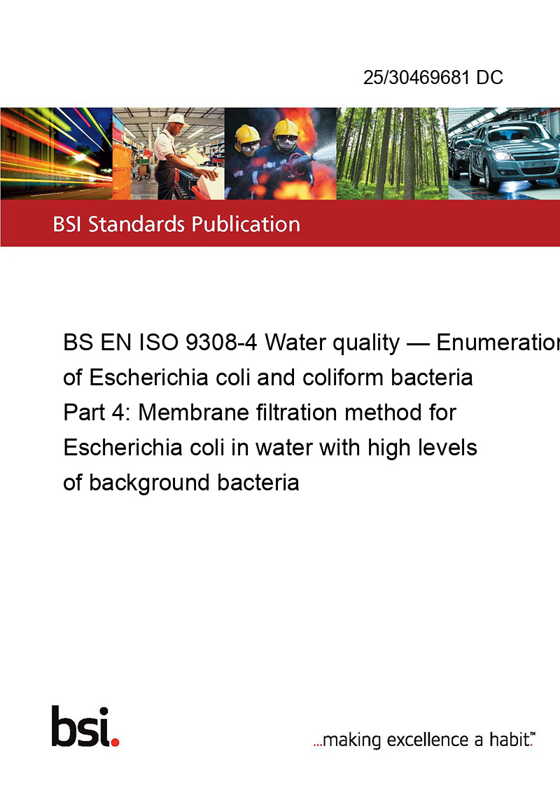 BS EN ISO 9308-4 Water quality — Enumeration of Escherichia coli and coliform bacteria Part 4: Membrane filtration method for Escherichia coli in water with high levels of background bacteria