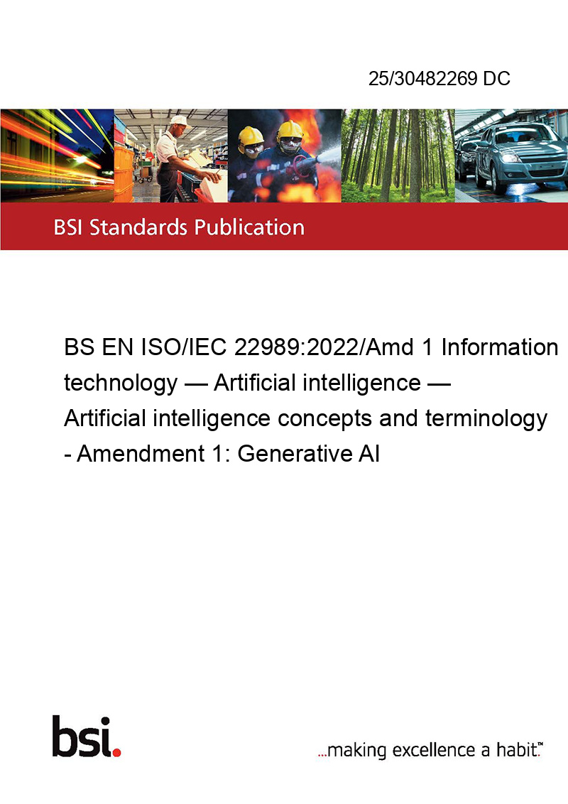 BS EN ISO/IEC 22989:2022/Amd 1 Information technology — Artificial intelligence — Artificial intelligence concepts and terminology - Amendment 1: Generative AI