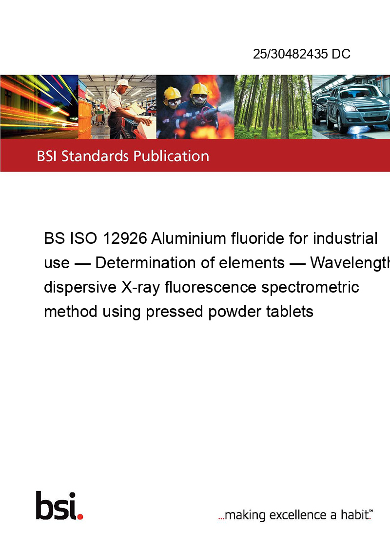 BS ISO 12926 Aluminium fluoride for industrial use — Determination of elements — Wavelength dispersive X-ray fluorescence spectrometric method using pressed powder tablets