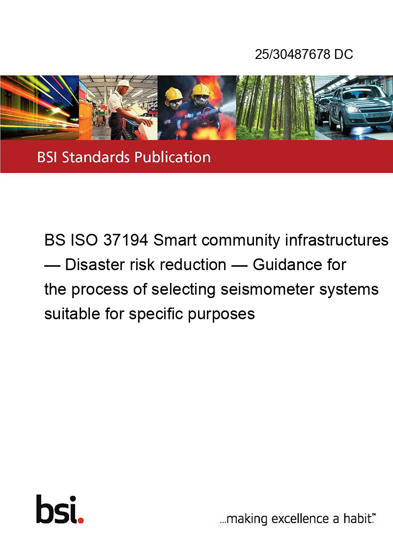 BS ISO 37194 Smart community infrastructures — Disaster risk reduction — Guidance for the process of selecting seismometer systems suitable for specific purposes
