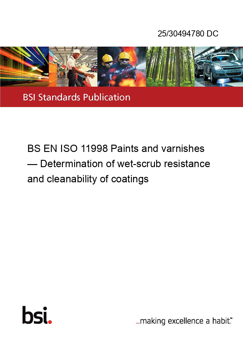 BS EN ISO 11998 Paints and varnishes — Determination of wet-scrub resistance and cleanability of coatings