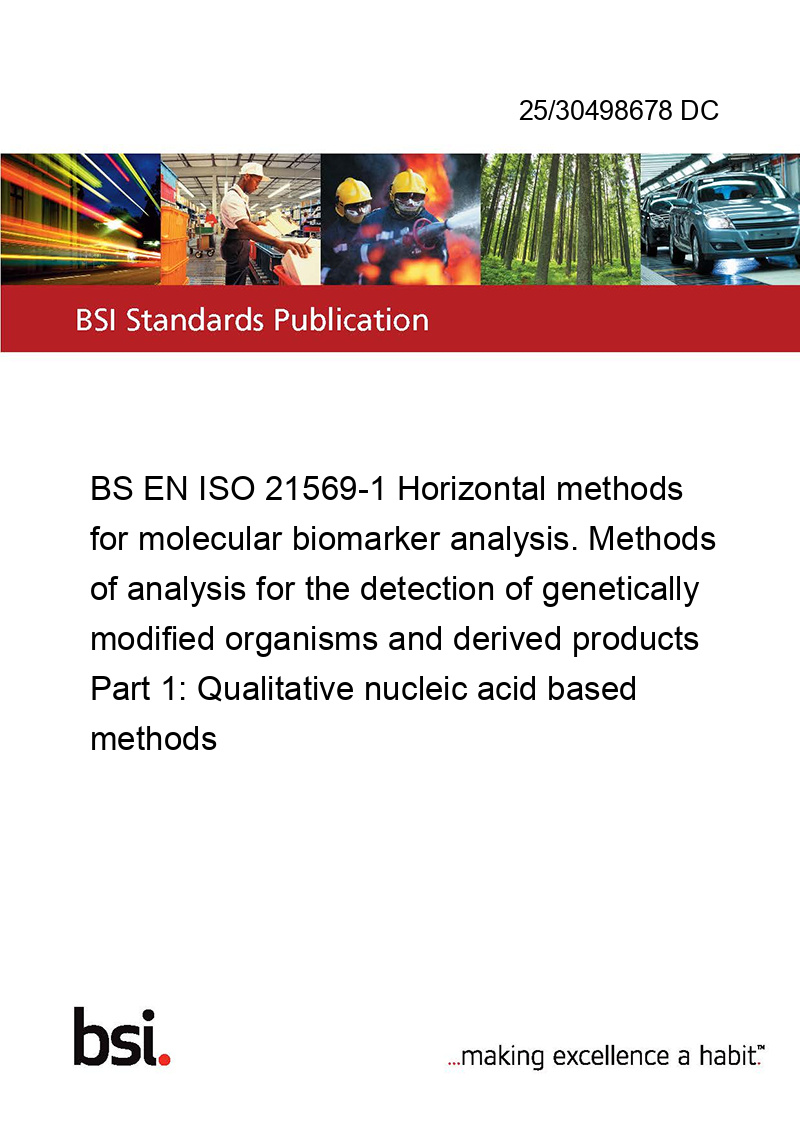 BS EN ISO 21569-1 Horizontal methods for molecular biomarker analysis. Methods of analysis for the detection of genetically modified organisms and derived products Part 1: Qualitative nucleic acid based methods