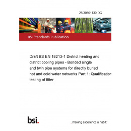 Draft BS EN 18213-1 District heating and district cooling pipes - Bonded single and twin pipe systems for directly buried hot and cold water networks Part 1: Qualification testing of fitter