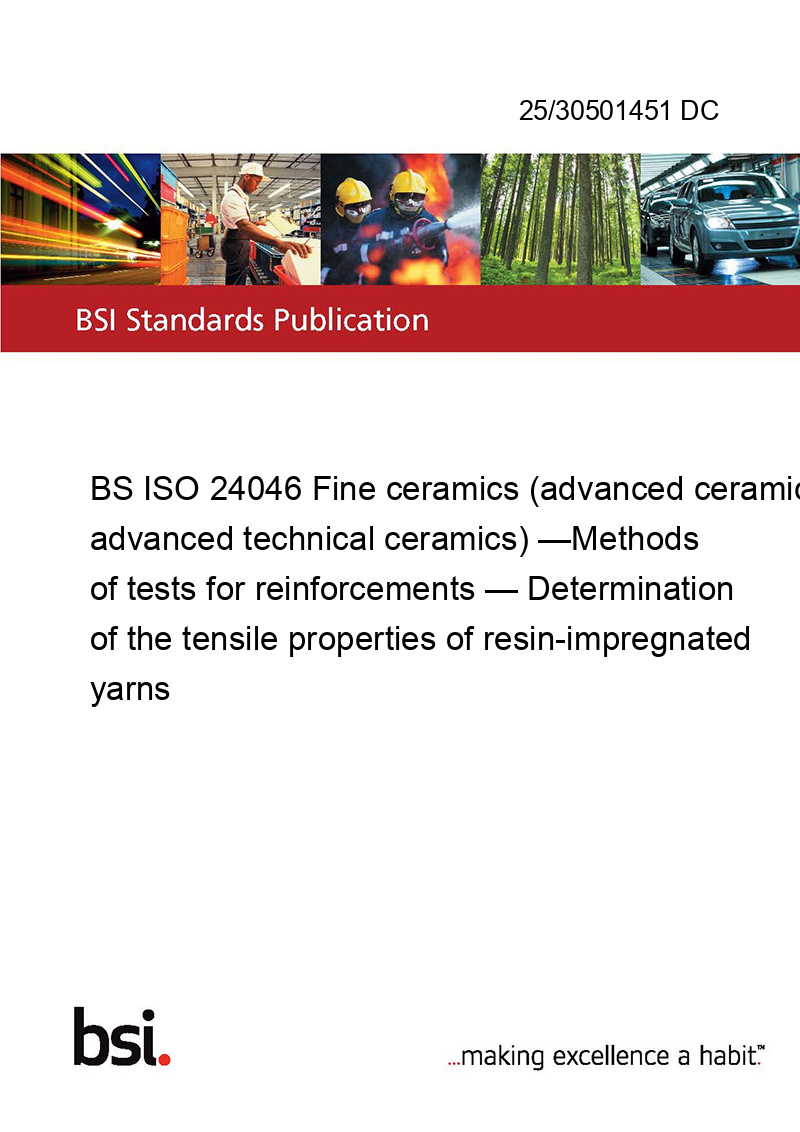 BS ISO 24046 Fine ceramics (advanced ceramics, advanced technical ceramics) —Methods of tests for reinforcements — Determination of the tensile properties of resin-impregnated yarns