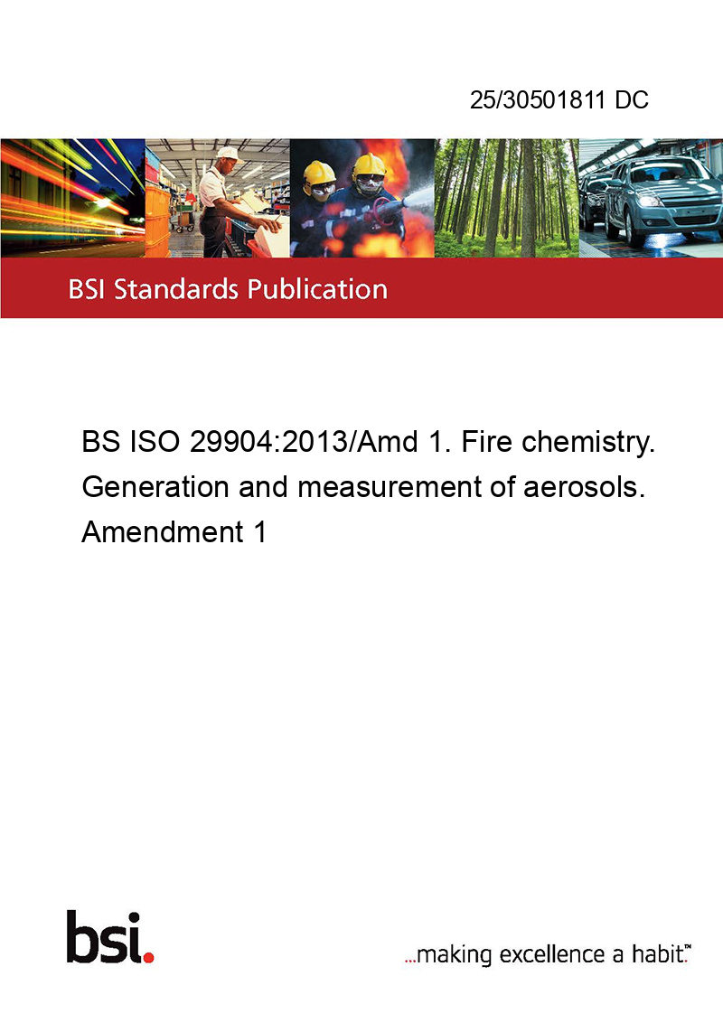 This standard 25/30501811 DC BS ISO 29904:2013/Amd 1. Fire chemistry. Generation and measurement of aerosols. Amendment 1 is classified in these ICS categories: