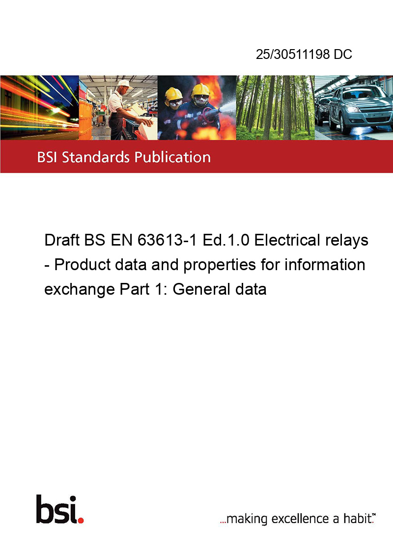 Draft BS EN 63613-1 Ed.1.0 Electrical relays - Product data and properties for information exchange Part 1: General data