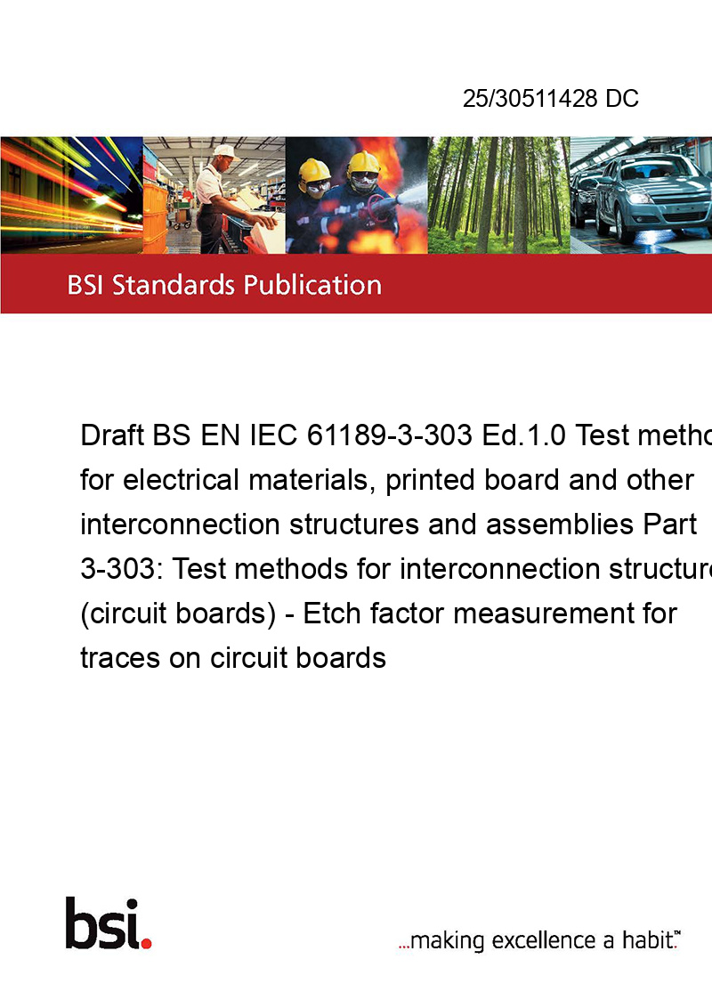 Draft BS EN IEC 61189-3-303 Ed.1.0 Test methods for electrical materials, printed board and other interconnection structures and assemblies Part 3-303: Test methods for interconnection structures (circuit boards) - Etch factor measurement for traces on circuit boards