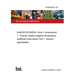 Draft BS EN 60539-1 Amd.1 Amendment 1 - Directly heated negative temperature coefficient thermistors Part 1: Generic specification
