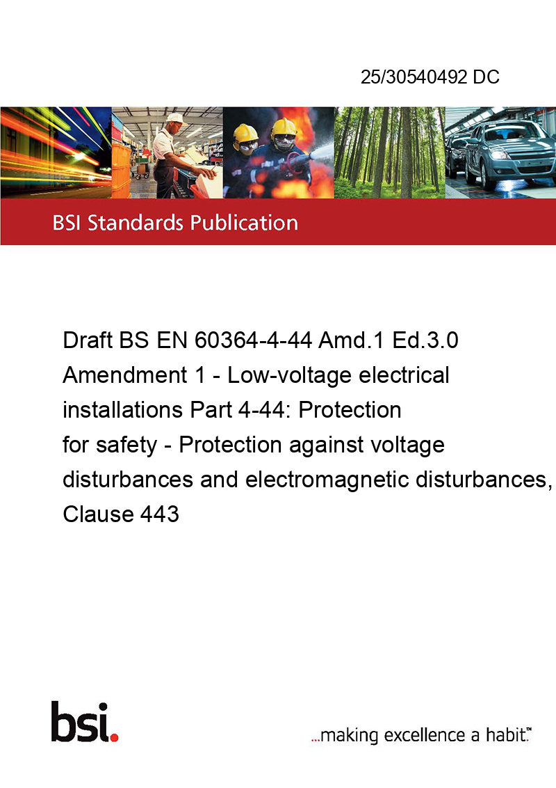 Draft BS EN 60364-4-44 Amd.1 Ed.3.0 Amendment 1 - Low-voltage electrical installations Part 4-44: Protection for safety - Protection against voltage disturbances and electromagnetic disturbances, Clause 443