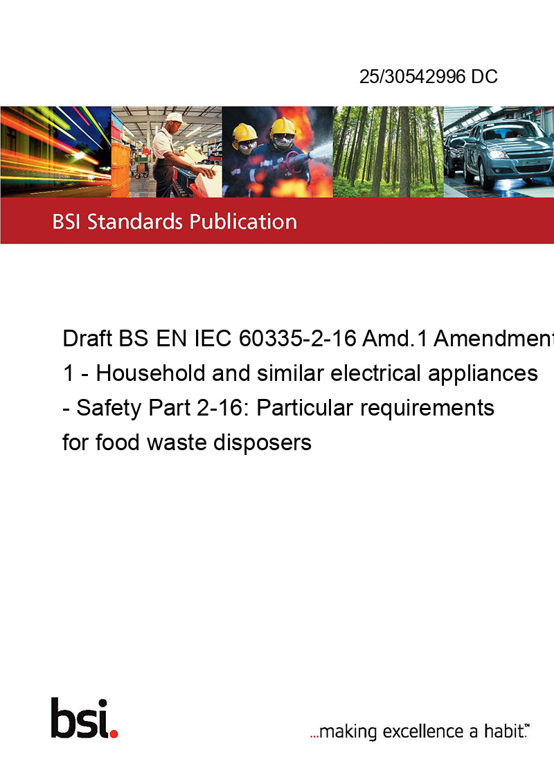 Draft BS EN IEC 60335-2-16 Amd.1 Amendment 1 - Household and similar electrical appliances - Safety Part 2-16: Particular requirements for food waste disposers
