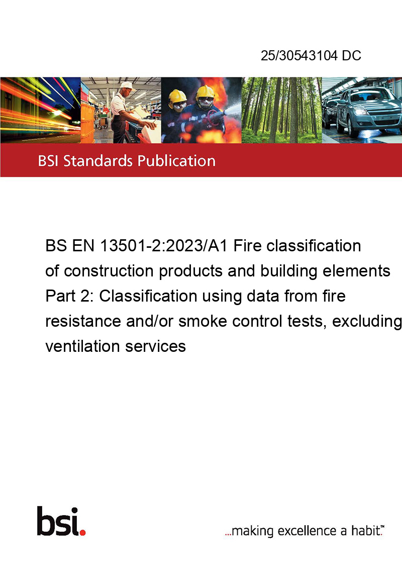 BS EN 13501-2:2023/A1 Fire classification of construction products and building elements Part 2: Classification using data from fire resistance and/or smoke control tests, excluding ventilation services