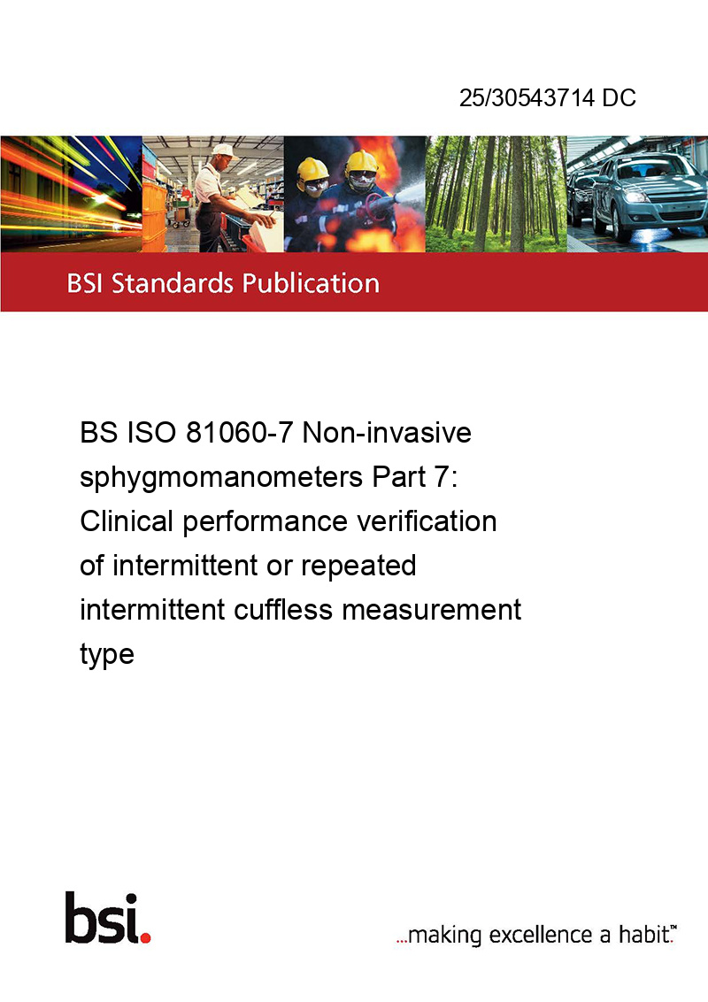 BS ISO 81060-7 Non-invasive sphygmomanometers Part 7: Clinical performance verification of intermittent or repeated intermittent cuffless measurement type
