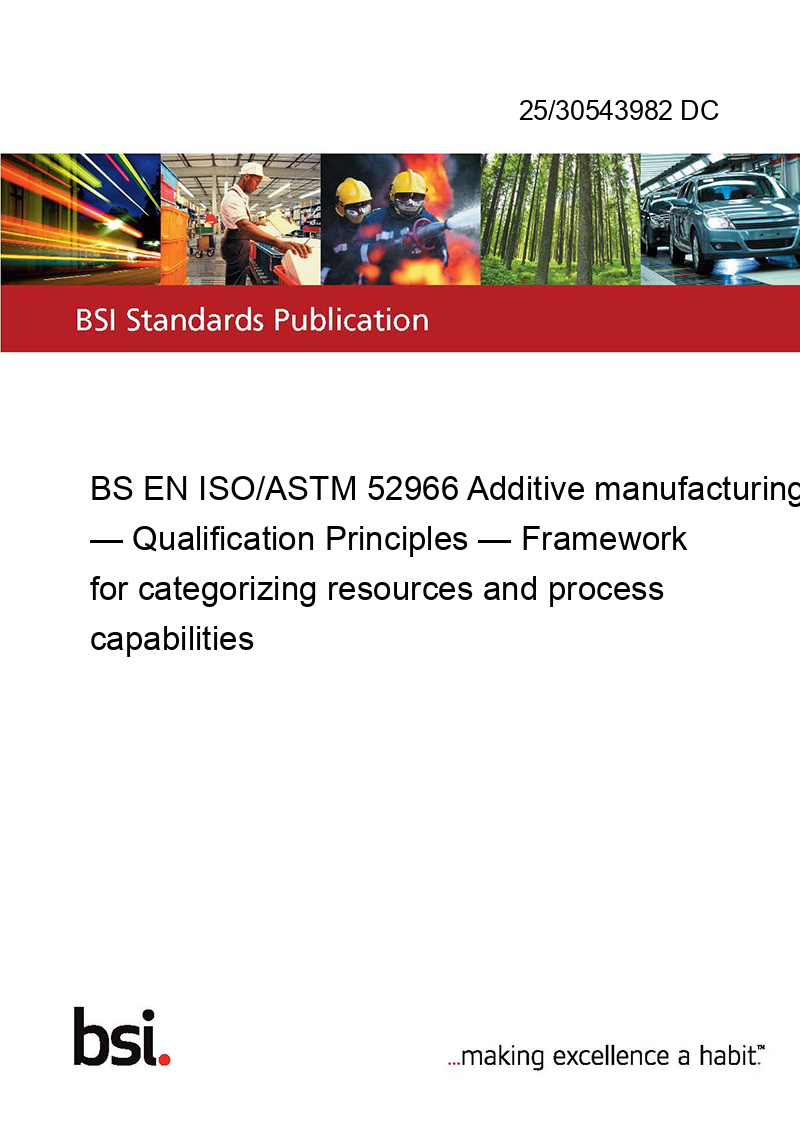 BS EN ISO/ASTM 52966 Additive manufacturing — Qualification Principles — Framework for categorizing resources and process capabilities