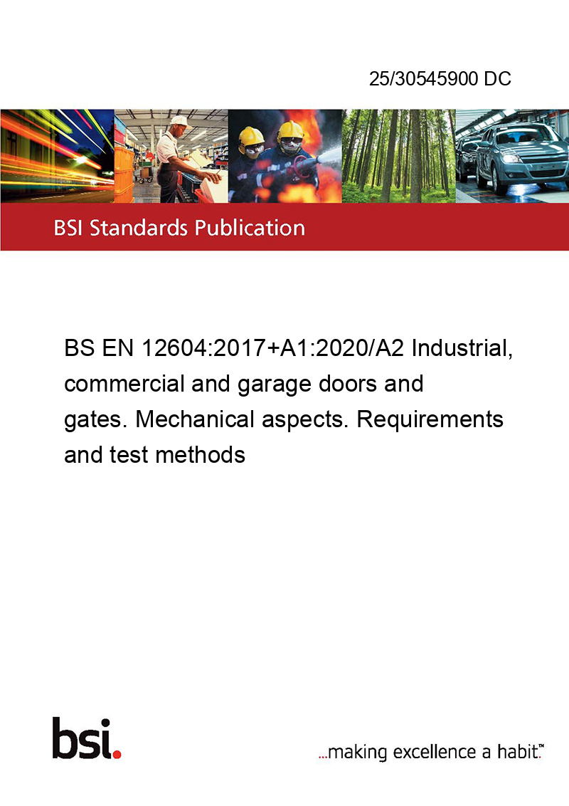 BS EN 12604:2017+A1:2020/A2 Industrial, commercial and garage doors and gates. Mechanical aspects. Requirements and test methods