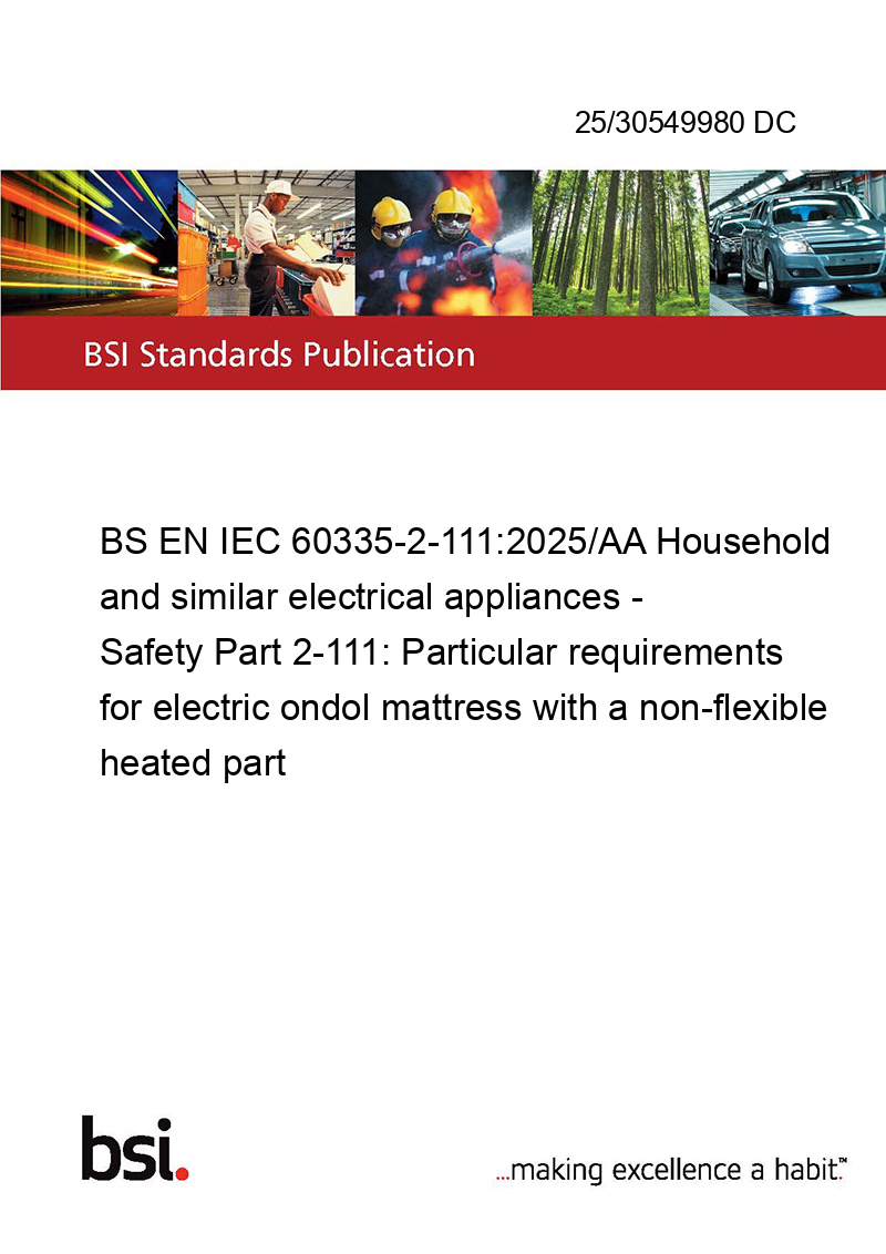 BS EN IEC 60335-2-111:2025/AA Household and similar electrical appliances - Safety Part 2-111: Particular requirements for electric ondol mattress with a non-flexible heated part