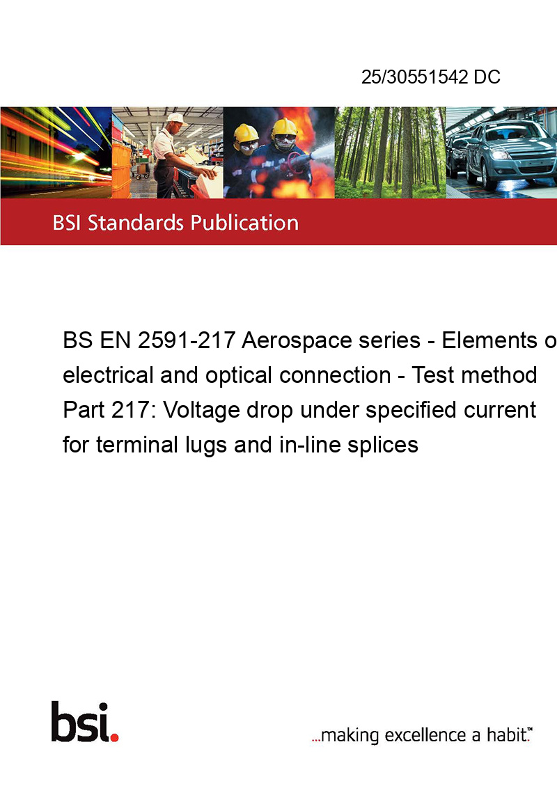 BS EN 2591-217 Aerospace series - Elements of electrical and optical connection - Test method Part 217: Voltage drop under specified current for terminal lugs and in-line splices