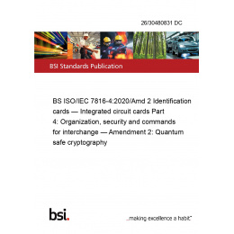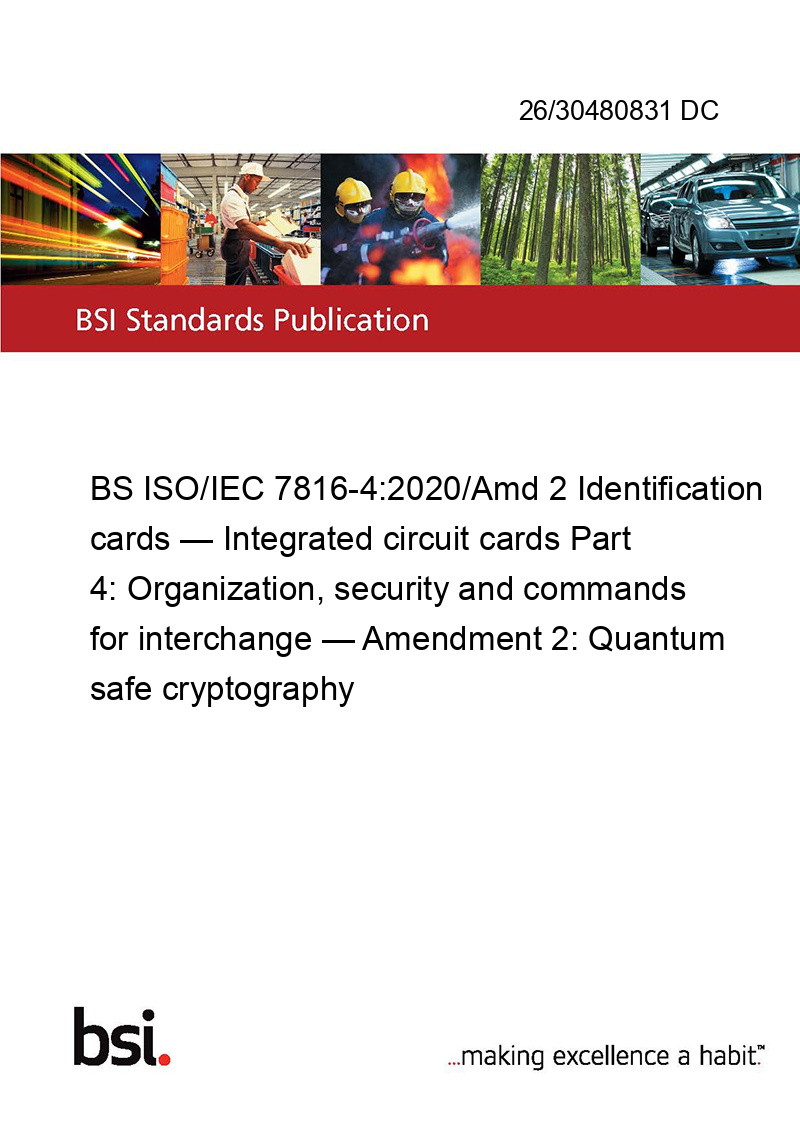 BS ISO/IEC 7816-4:2020/Amd 2 Identification cards — Integrated circuit cards Part 4: Organization, security and commands for interchange — Amendment 2: Quantum safe cryptography