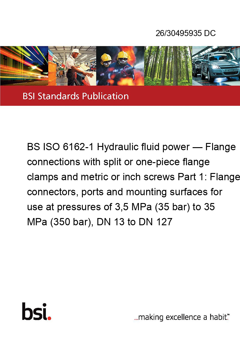 This standard 26/30495935 DC BS ISO 6162-1 Hydraulic fluid power — Flange connections with split or one-piece flange clamps and metric or inch screws is classified in these ICS categories: