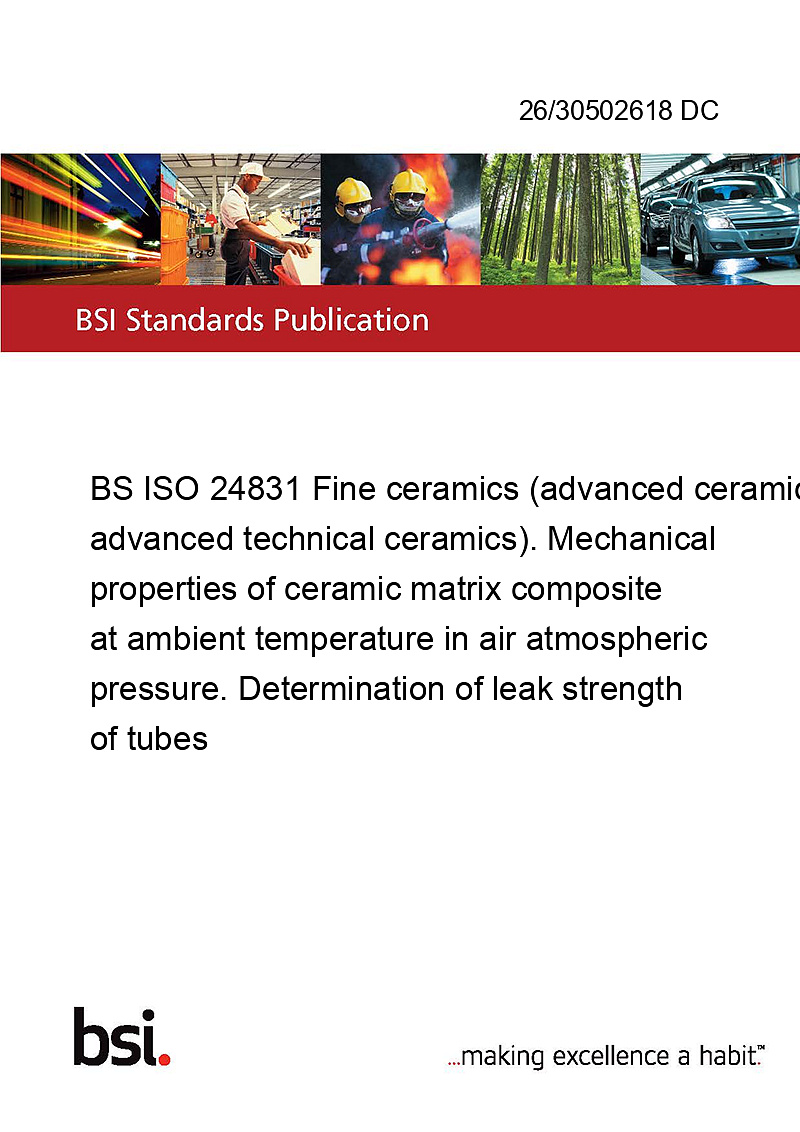 This standard 26/30502618 DC BS ISO 24831 Fine ceramics (advanced ceramics, advanced technical ceramics). Mechanical properties of ceramic matrix composite at ambient temperature in air atmospheric pressure. Determination of leak strength of tubes is classified in these ICS categories: