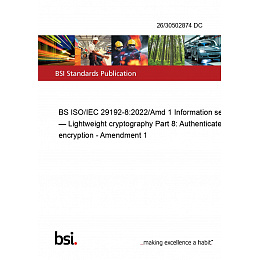 BS ISO/IEC 29192-8:2022/Amd 1 Information security — Lightweight cryptography Part 8: Authenticated encryption - Amendment 1