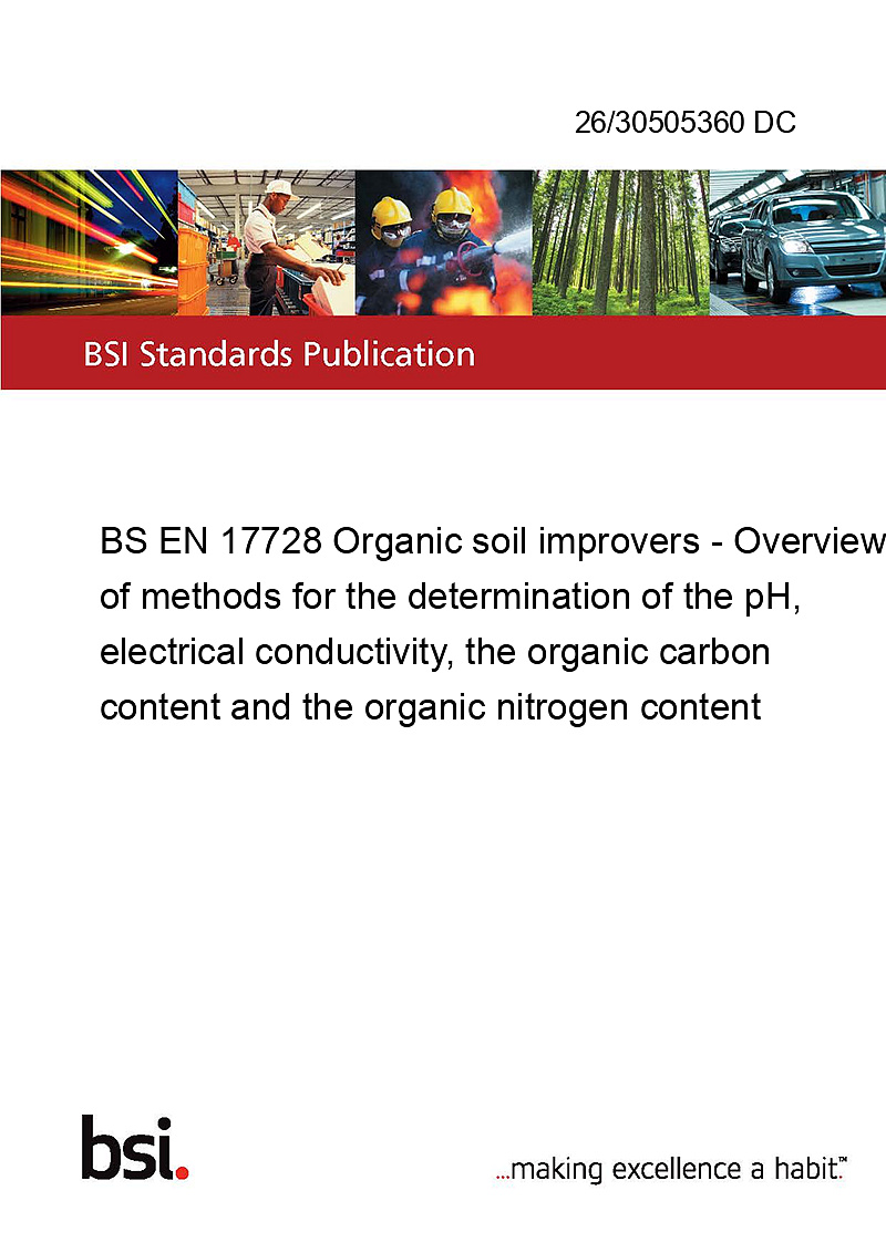 BS EN 17728 Organic soil improvers - Overview of methods for the determination of the pH, electrical conductivity, the organic carbon content and the organic nitrogen content