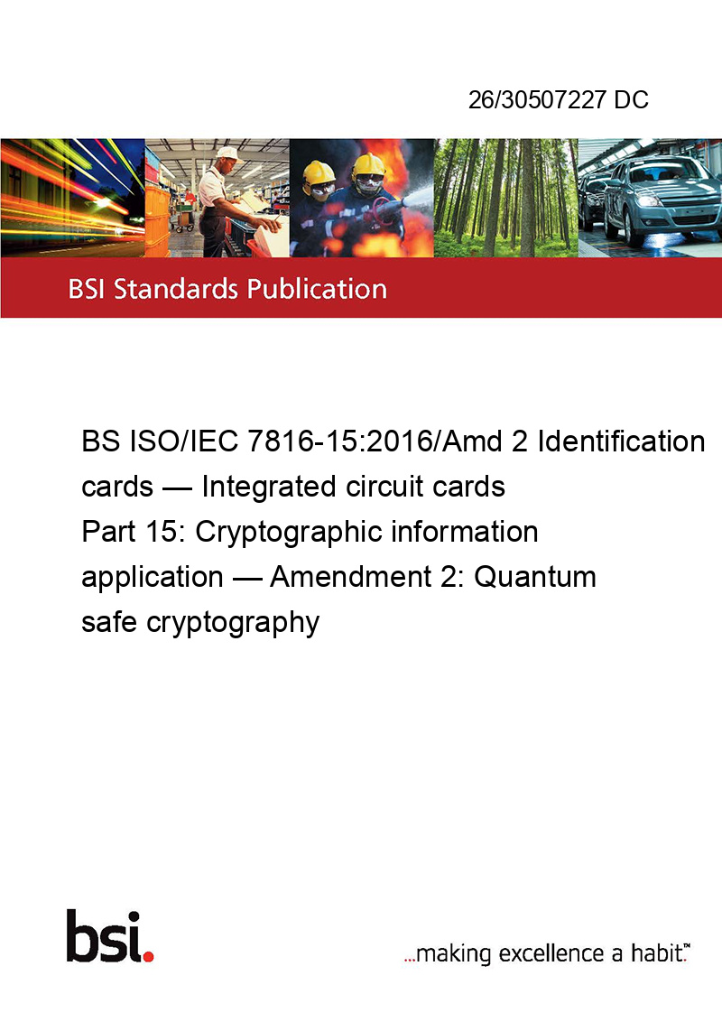 BS ISO/IEC 7816-15:2016/Amd 2 Identification cards — Integrated circuit cards Part 15: Cryptographic information application — Amendment 2: Quantum safe cryptography