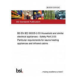BS EN IEC 60335-2-53 Household and similar electrical appliances - Safety Part 2-53: Particular requirements for sauna heating appliances and infrared cabins