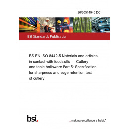 BS EN ISO 8442-5 Materials and articles in contact with foodstuffs — Cutlery and table holloware Part 5: Specification for sharpness and edge retention test of cutlery
