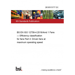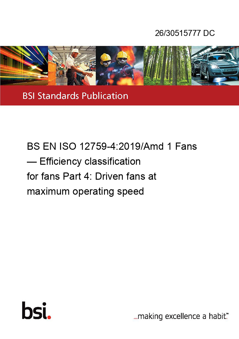 BS EN ISO 12759-4:2019/Amd 1 Fans — Efficiency classification for fans Part 4: Driven fans at maximum operating speed