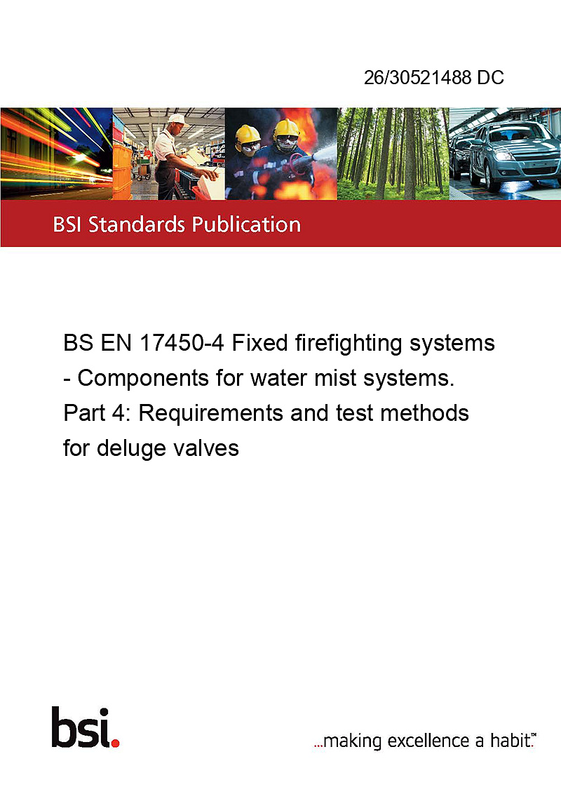 BS EN 17450-4 Fixed firefighting systems - Components for water mist systems. Part 4: Requirements and test methods for deluge valves