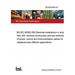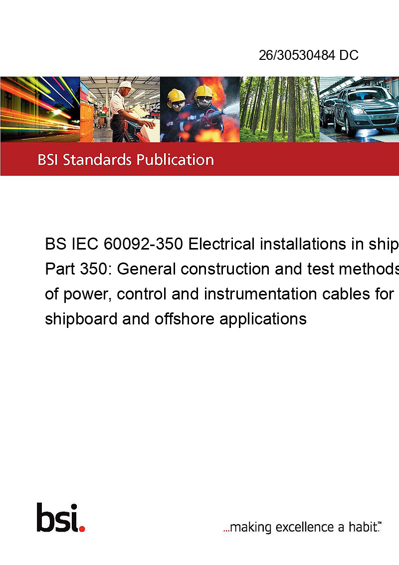 BS IEC 60092-350 Electrical installations in ships Part 350: General construction and test methods of power, control and instrumentation cables for shipboard and offshore applications