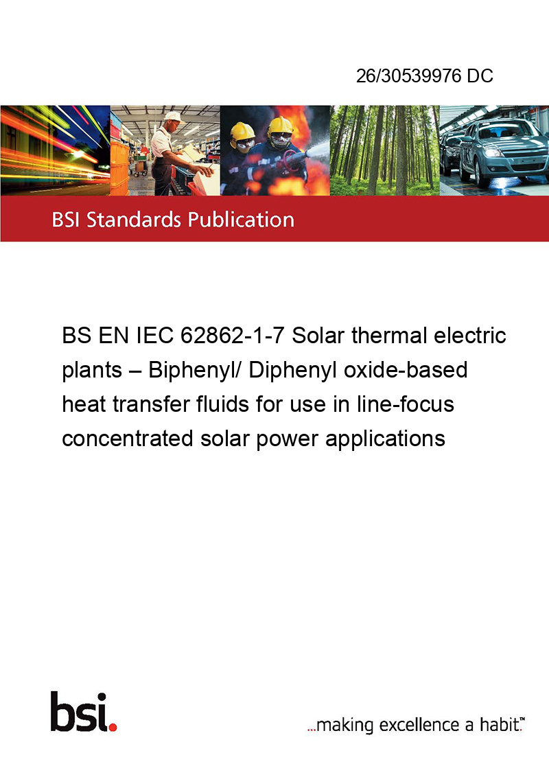 BS EN IEC 62862-1-7 Solar thermal electric plants – Biphenyl/ Diphenyl oxide-based heat transfer fluids for use in line-focus concentrated solar power applications