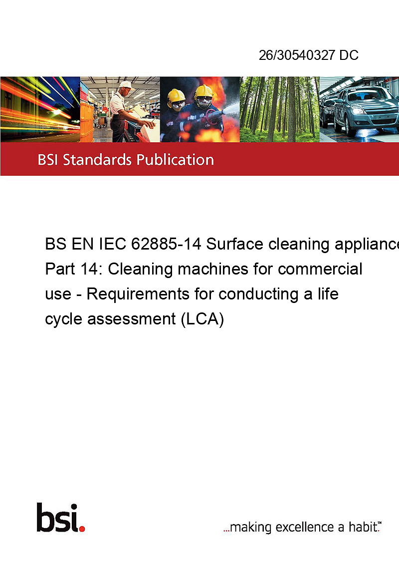 BS EN IEC 62885-14 Surface cleaning appliances Part 14: Cleaning machines for commercial use - Requirements for conducting a life cycle assessment (LCA)