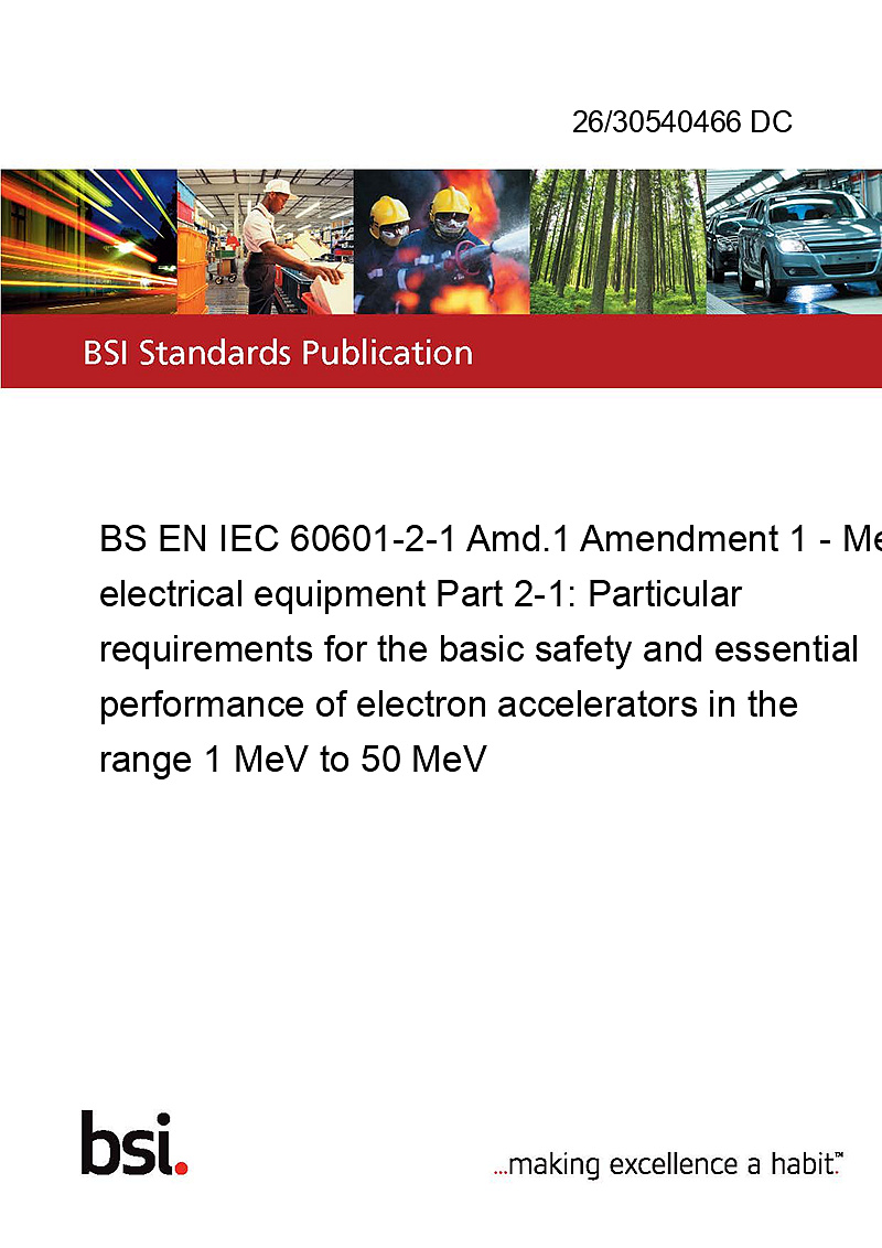 BS EN IEC 60601-2-1 Amd.1 Amendment 1 - Medical electrical equipment Part 2-1: Particular requirements for the basic safety and essential performance of electron accelerators in the range 1 MeV to 50 MeV