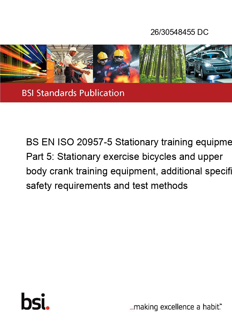 BS EN ISO 20957-5 Stationary training equipment Part 5: Stationary exercise bicycles and upper body crank training equipment, additional specific safety requirements and test methods