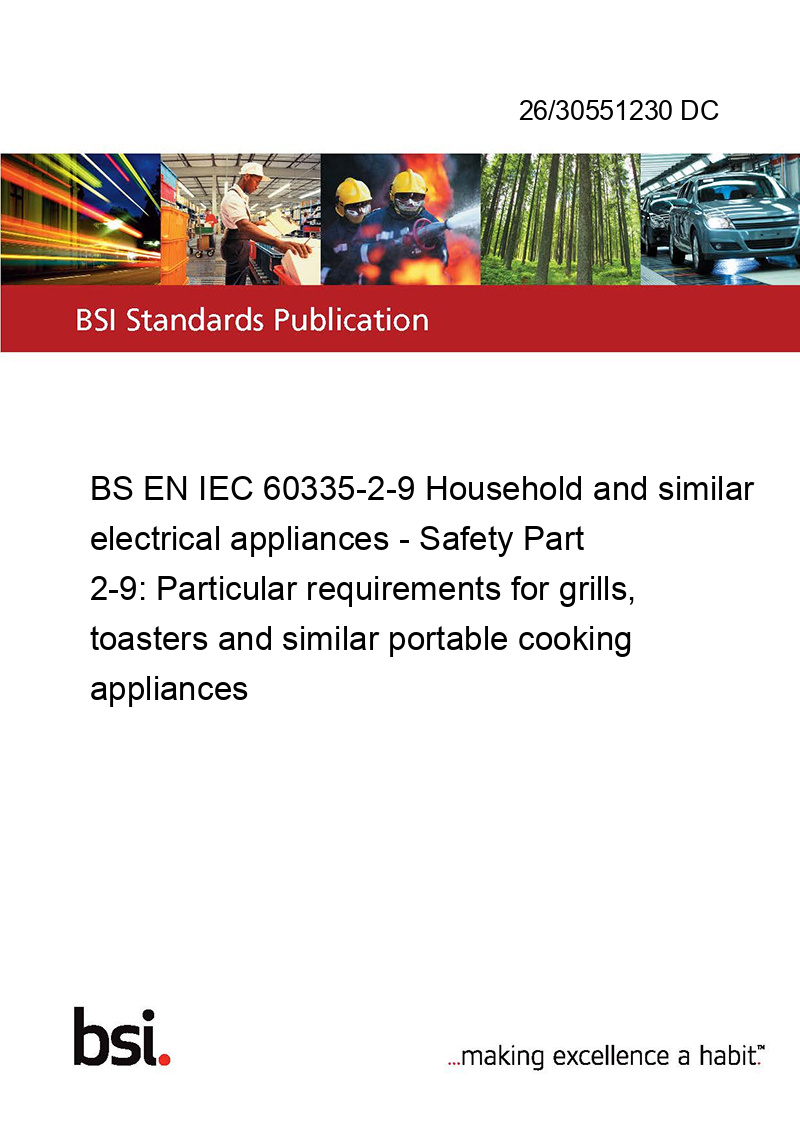 BS EN IEC 60335-2-9 Household and similar electrical appliances - Safety Part 2-9: Particular requirements for grills, toasters and similar portable cooking appliances