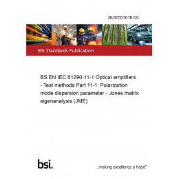 BS EN IEC 61290-11-1 Optical amplifiers - Test methods Part 11-1: Polarization mode dispersion parameter - Jones matrix eigenanalysis (JME)