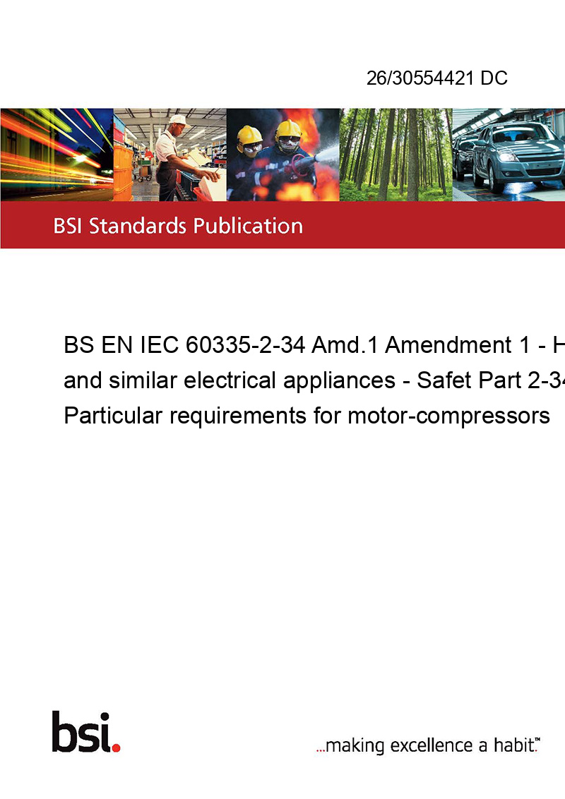 BS EN IEC 60335-2-34 Amd.1 Amendment 1 - Household and similar electrical appliances - Safet Part 2-34: Particular requirements for motor-compressors